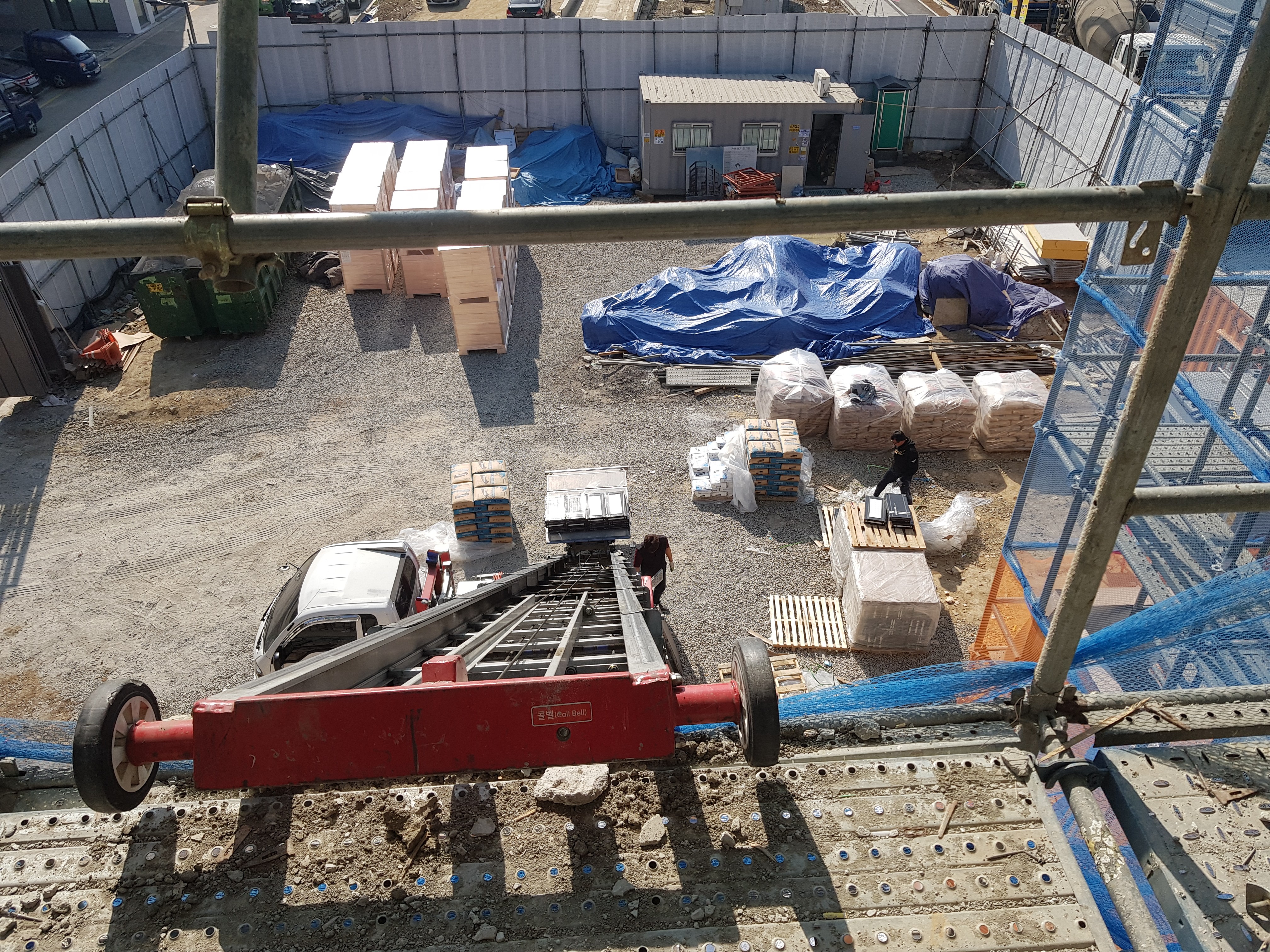 또한 사람이 옮기는 부분에 대한 애로사항이 있다거나 여러가지이유로 장비를 사용하며 호이스트 및 엘리베이터 역시 사람이 계단으로 하는것보다는 훨씬 효율적인 현장에서 작업하는데 호이스트나 엘리베이터가 설치 된 현장은 고층건물인 경우가 대부분입니다.