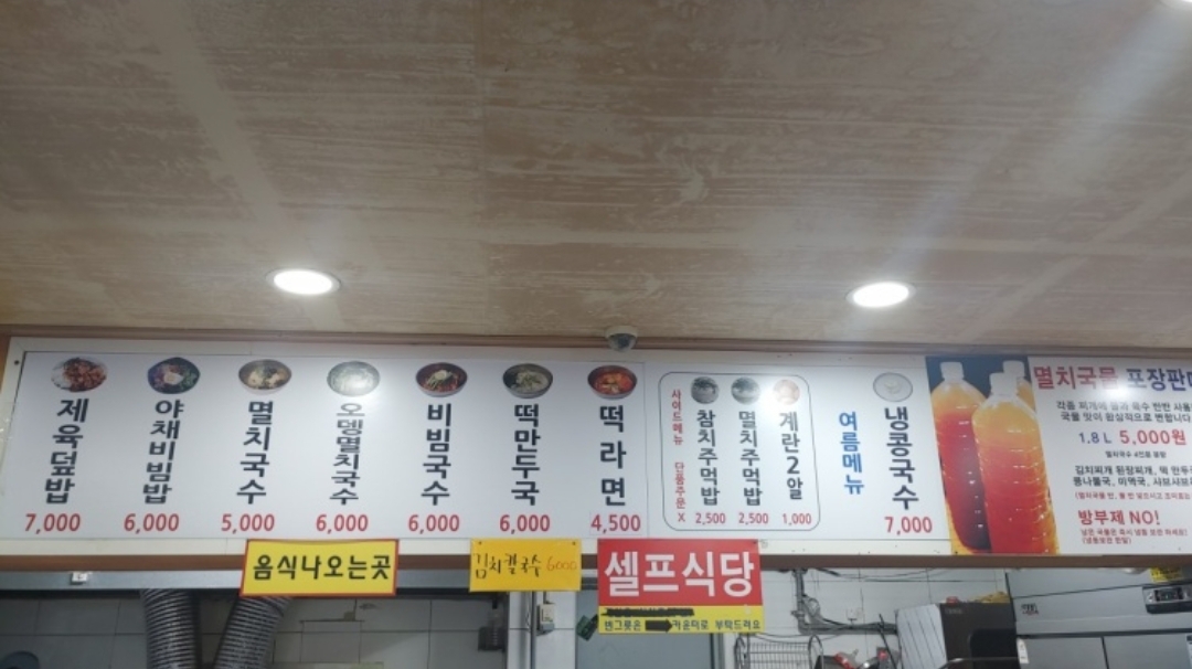 국수집이지만 제육덮밥 라면 등등도 같이 팔아요.